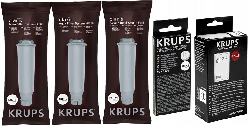 - AKCIA - 3ks originálny vodný filter KRUPS Claris F08801 + čistiace tablety Krups xs3000 + odvápňovací prášok Krups F054 za zvýhodnenú cenu.